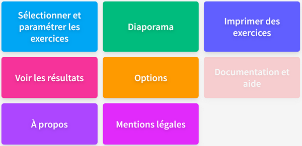 L’enseignant a la possibilité de sélectionner et paramétrer les exercices pour sa classe en accédant au Menu enseignant. Il peut ensuite partager ces réglages au travers d’une url.