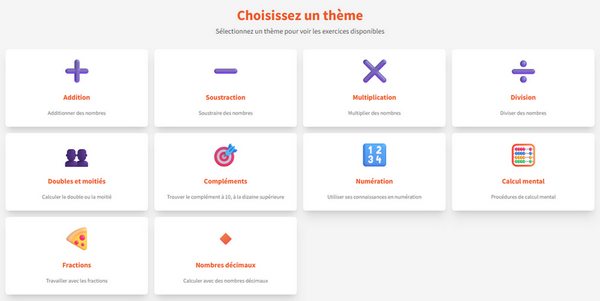 Cette application reprend les trois types d’apprentissage liés à l’enseignement du calcul mental :