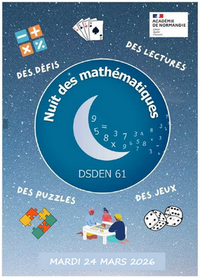 Dans le cadre de la 15ème semaine des mathématiques qui se déroulera du 14 au 25 mars 2026 sur le thème « Égalités », l’équipe départementale chargée de l’enseignement des mathématiques vous propose la Nuit des Mathématiques le 24 mars 2026.