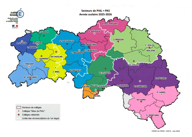 La généralisation des PIAL en inter-degrés public/privé est la réponse adaptée au territoire rural de l’Orne, pour une gestion de proximité des AESH. Ce sont 9 PIAL sectorisés dans une logique de bassin de recrutement de plusieurs collèges, pour un meilleur suivi de l’accompagnement entre le premier et le second degré.