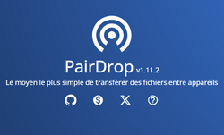 PairDrop est un service en ligne libre (open source sous licence MIT) et gratuit, qui permet de partager facilement sans fil via navigateur web (sans inscription ni installation) des fichiers entre des appareils (tablettes, ordinateurs, téléphones), quel que soit le système d’exploitation.